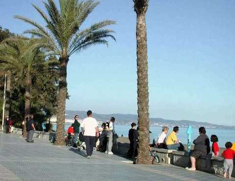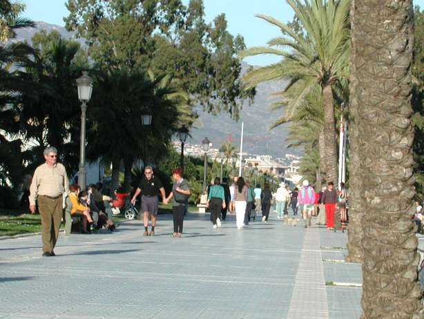 De strandboulevard van San Pedro de Alcántara, op een dag in februari, 18:30 's avonds ..